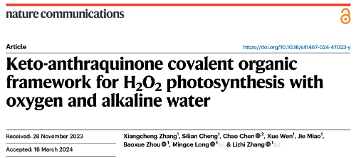 环院智慧|龙明策研究员和张礼知教授Nat. Commun.: 酮式蒽醌共价有机框架高效光合成双氧水