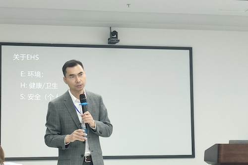 张洋在开场致辞中表示,在“双碳”目标的大背景下,EHS管理是生态文明建设过程的重要一环,微讲堂通过邀请EHS领域优秀校友开讲,搭建校友互动平台,加深学生们对EHS行业的了解和职业规划的思考。唐斌杰学长深耕EHS行业多年有着丰富的从业经验,此外他也是我们学院环一科技优秀人才奖学金的捐赠方,希望同学们好好努力争取获得此奖学金。